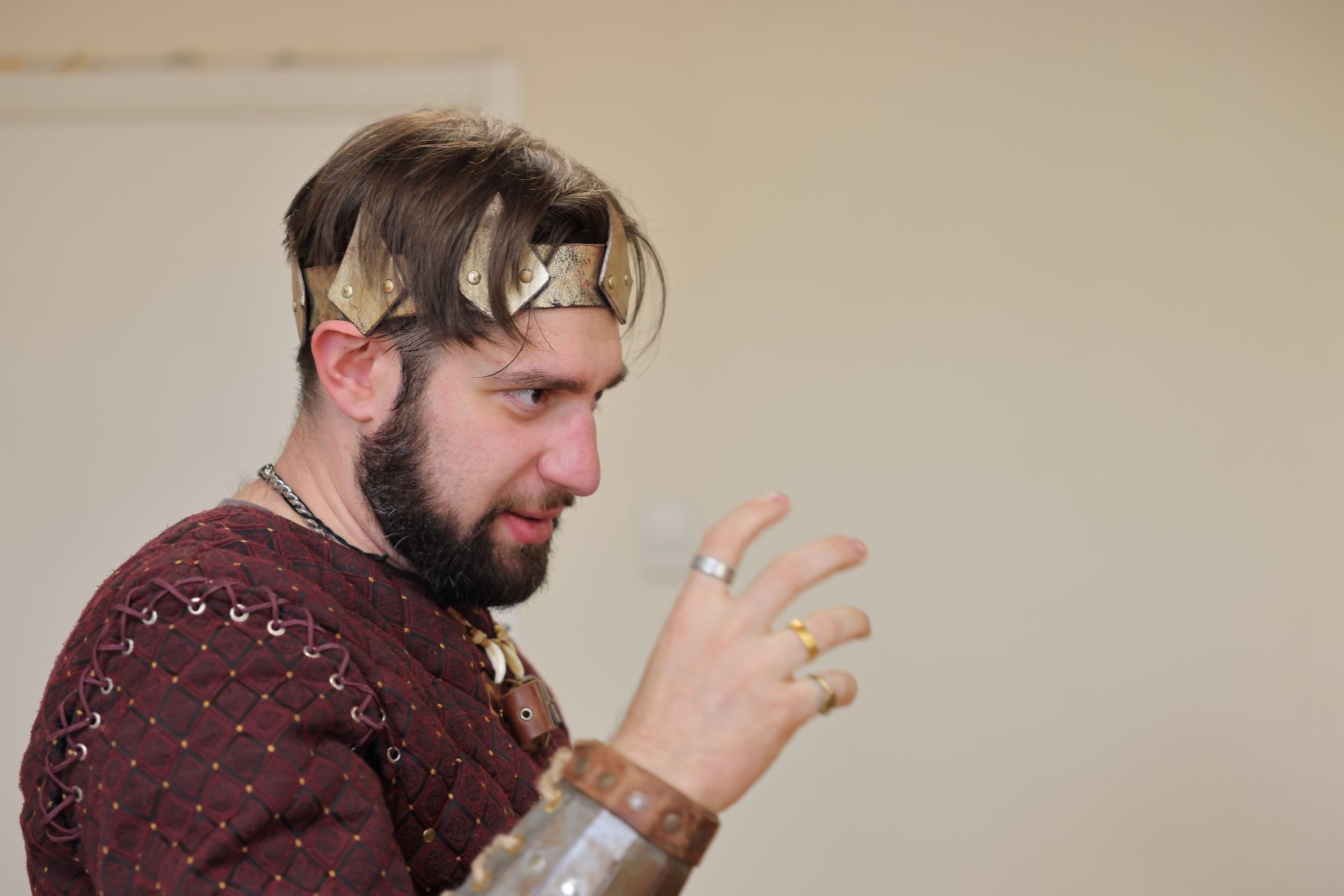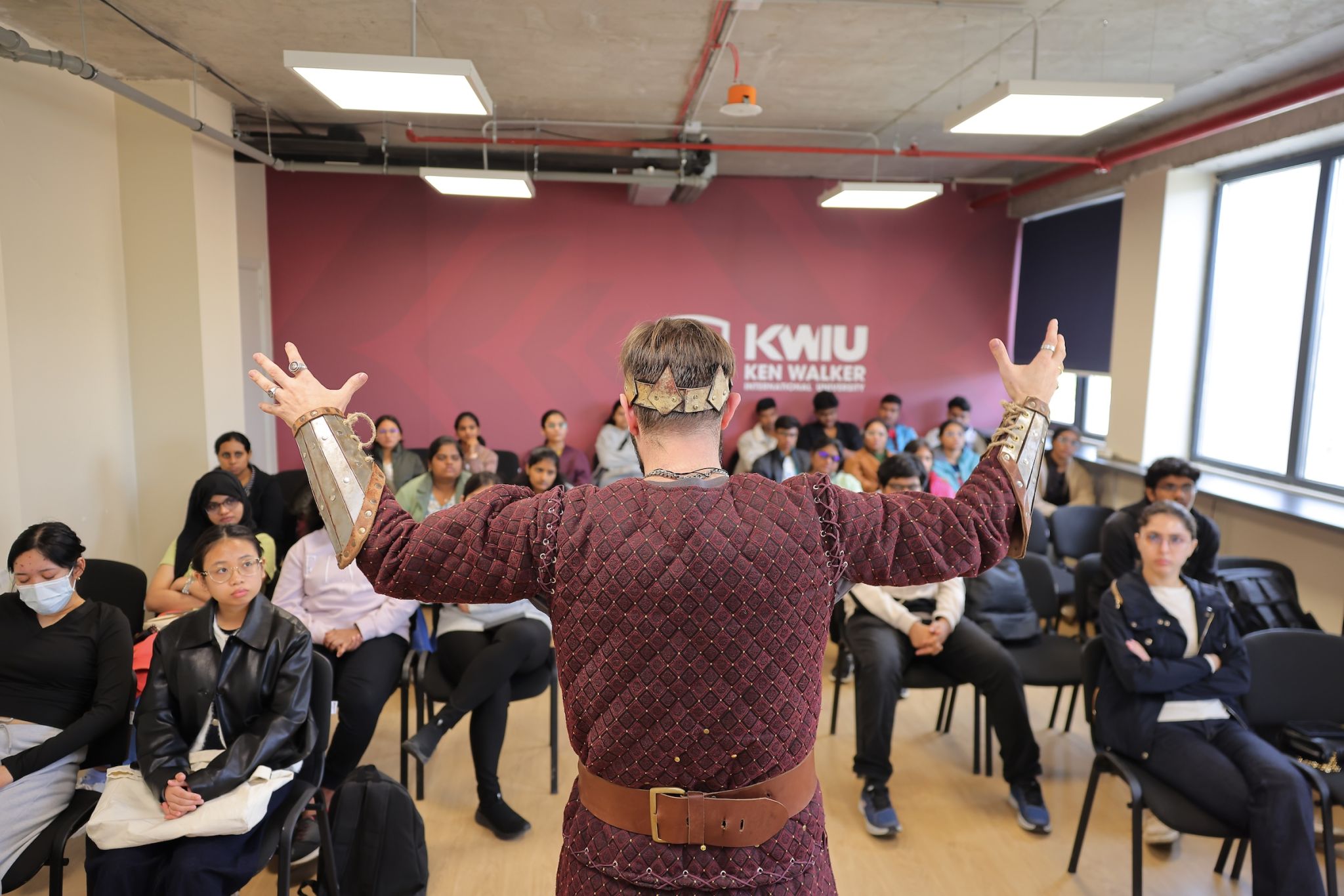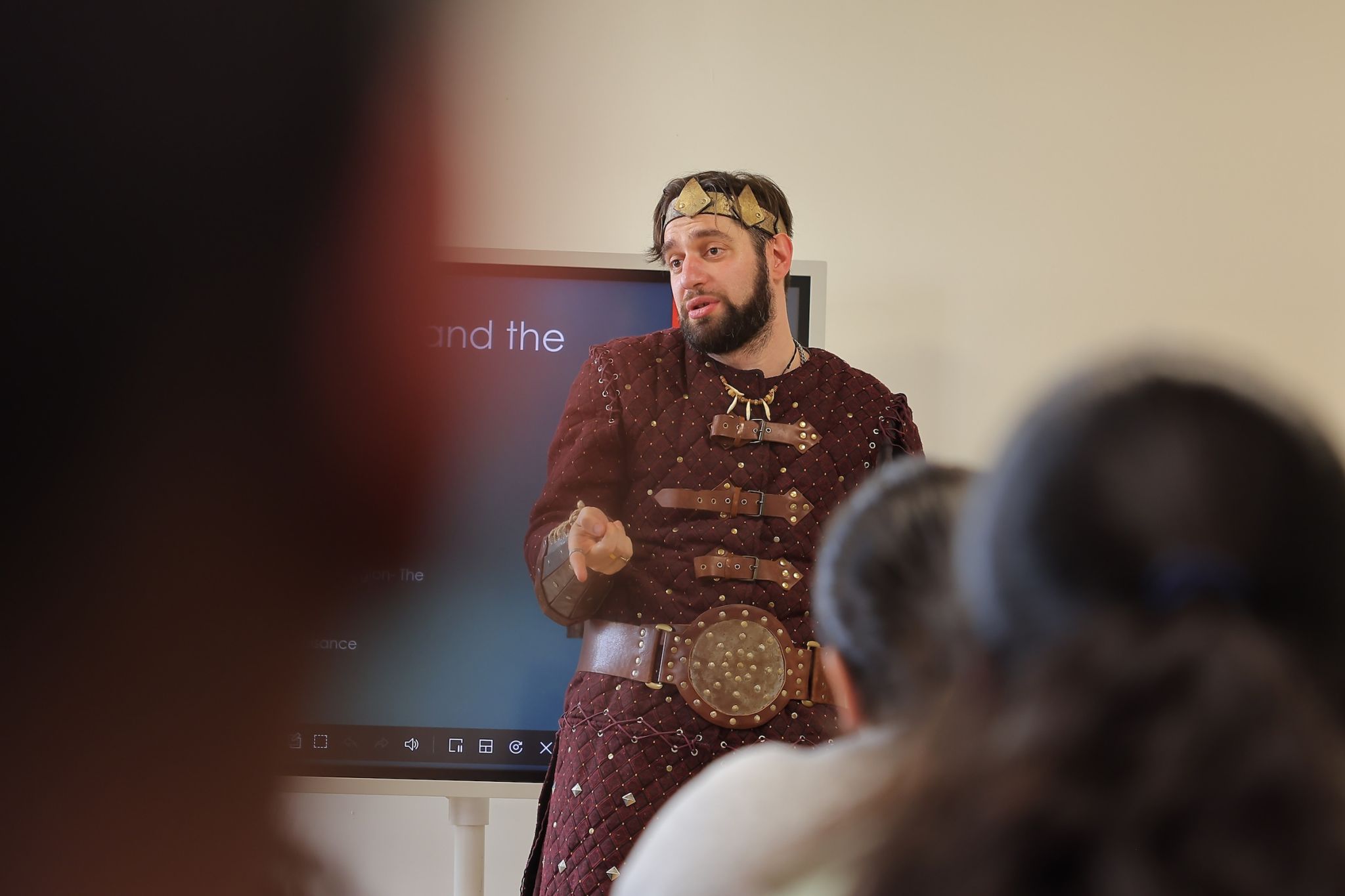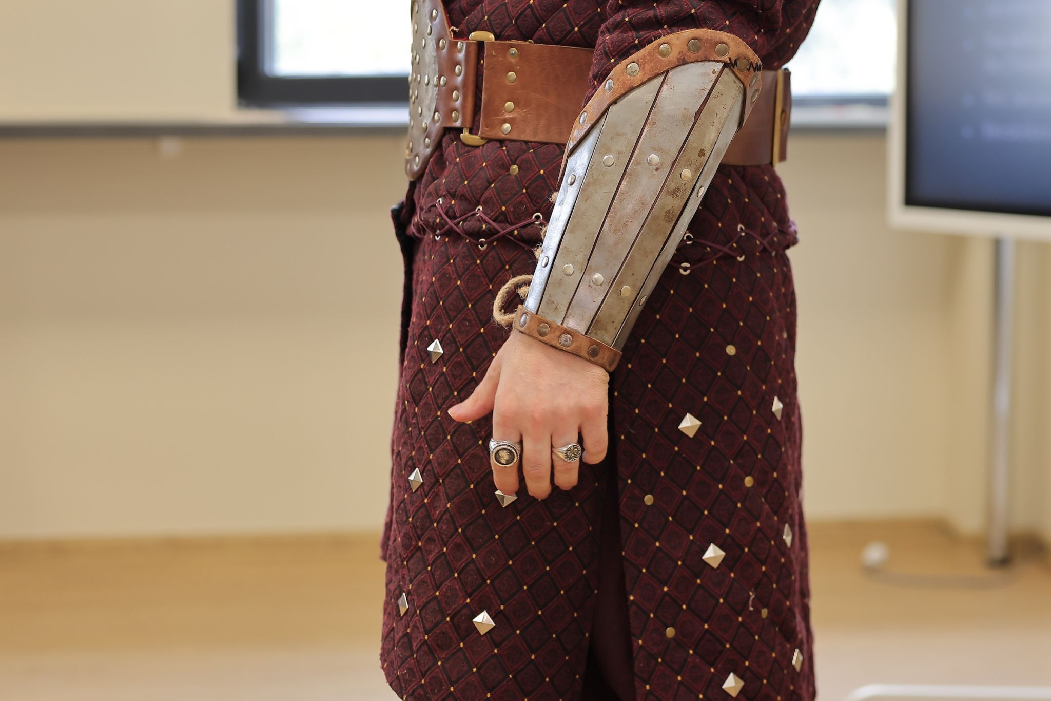 For this special occasion, Professor Kurdashvili wore a royal costume designed specifically for his first lecture with the students, adding a distinctive charm, emotional depth, and impressive atmosphere to the event. (The armor was created by costume reconstructor Akaki Makatsaria.)