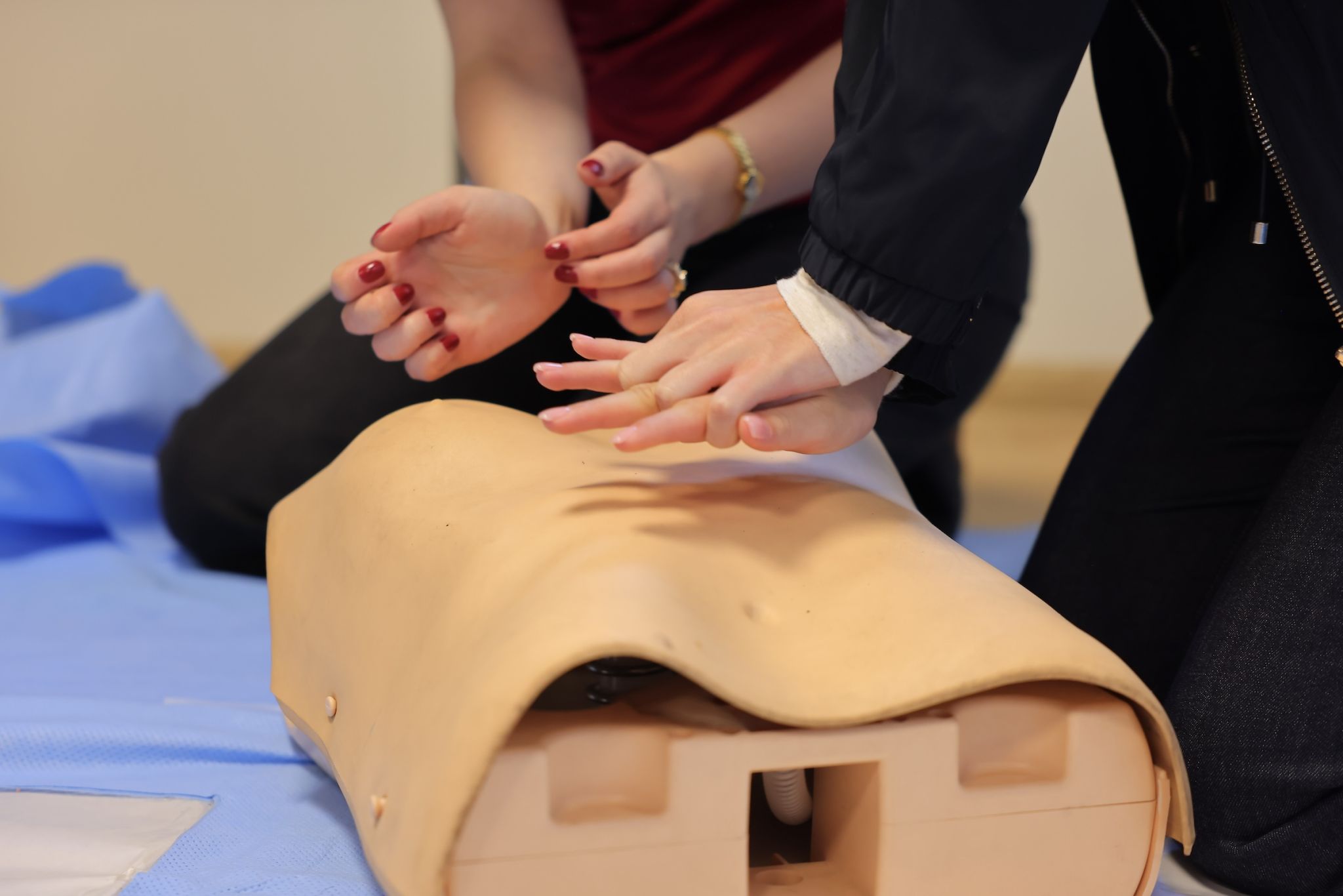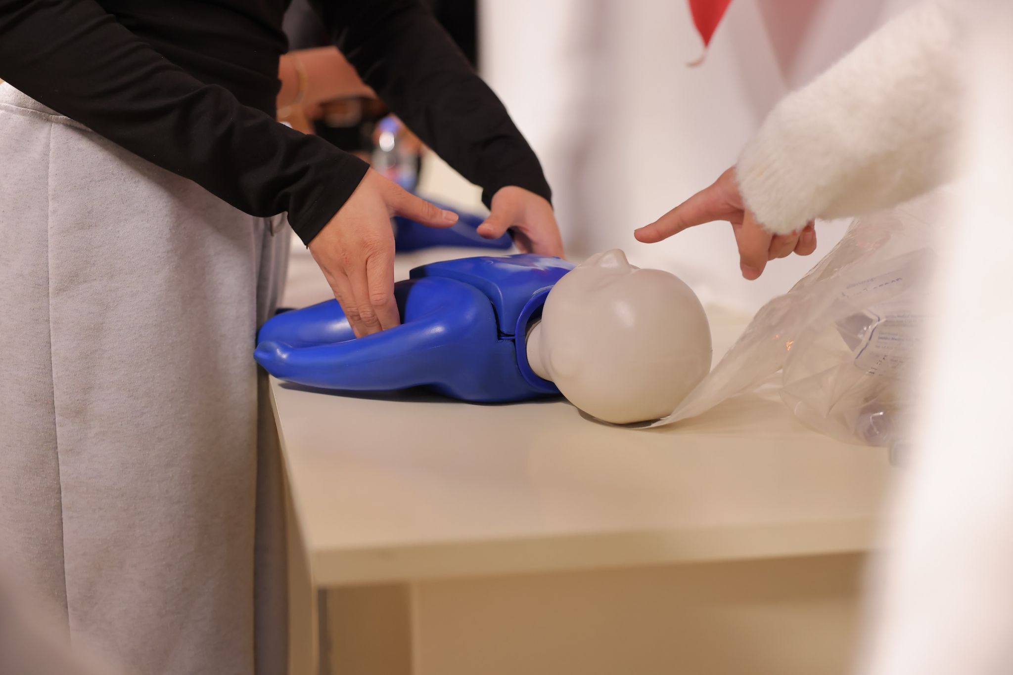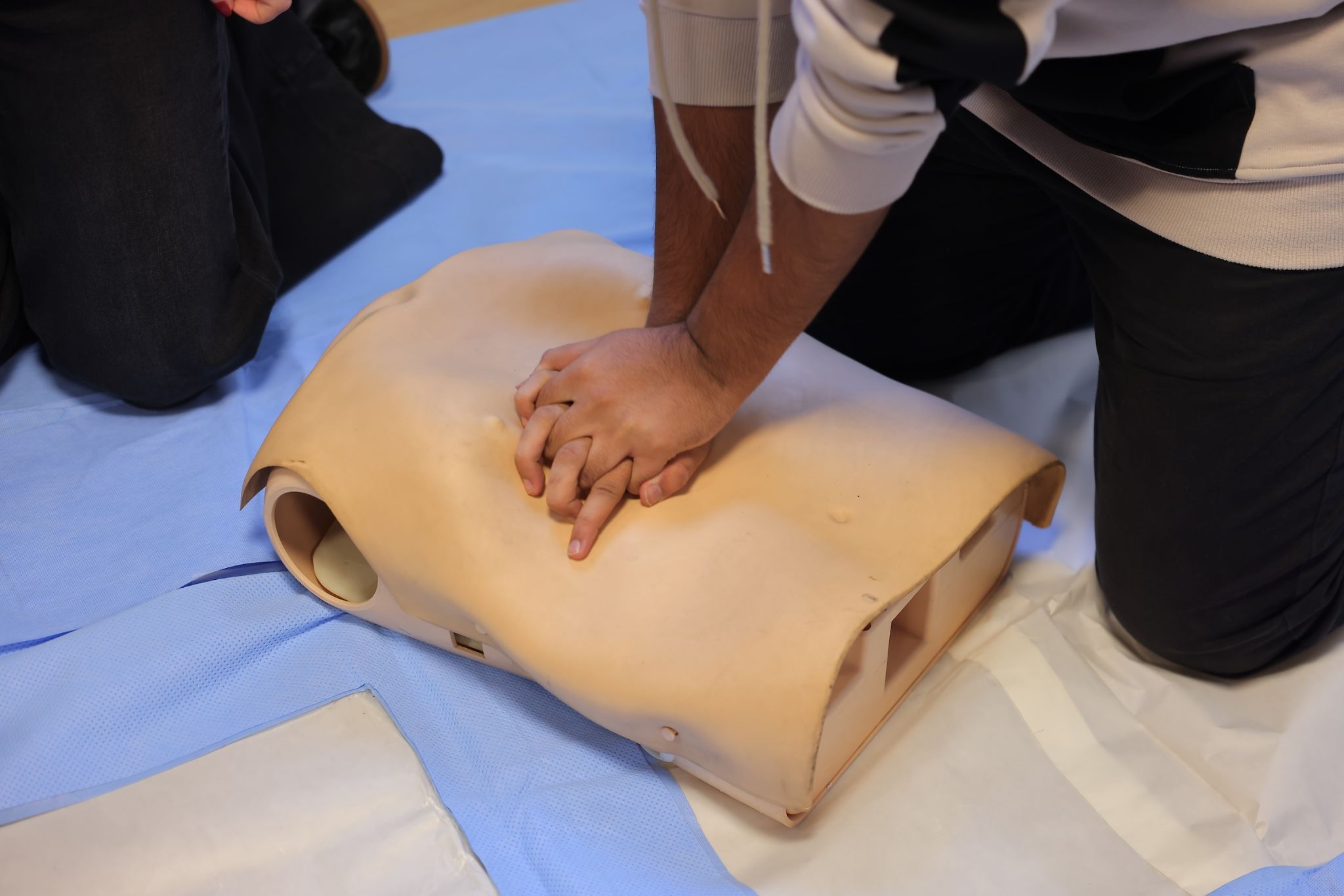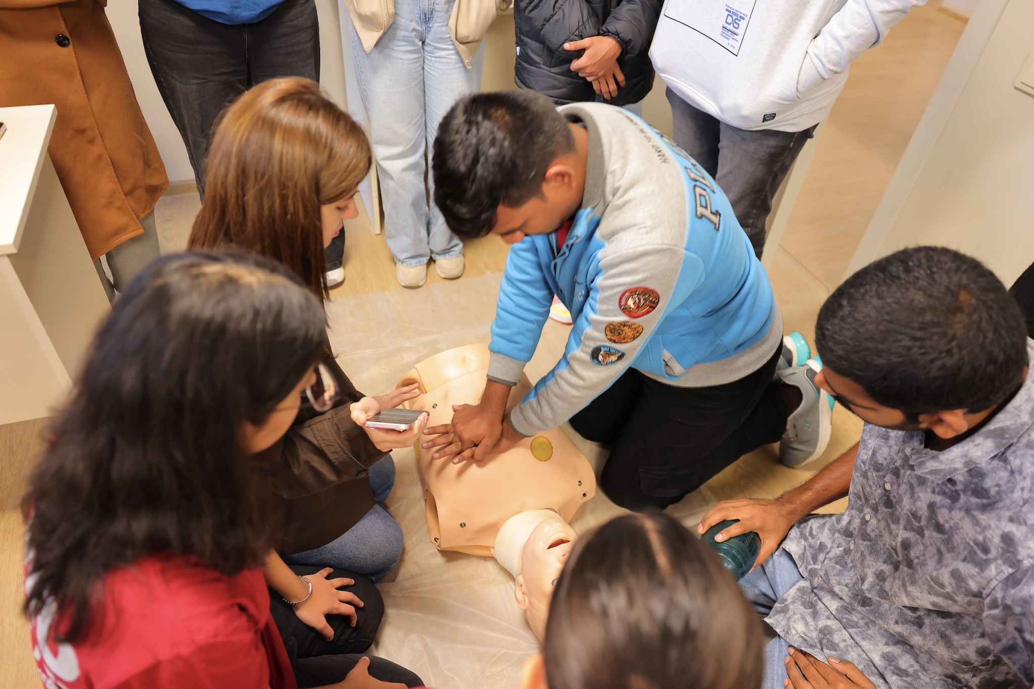 Following this introductory meeting, a hands-on simulation training was conducted. Ken Walker International University instructors guided students through essential steps for responding to an accident and stabilizing a victim until emergency services arrive. During the session, students practiced CPR (cardiopulmonary resuscitation - a lifesaving procedure performed when the heart stops) using medical simulation manikins.