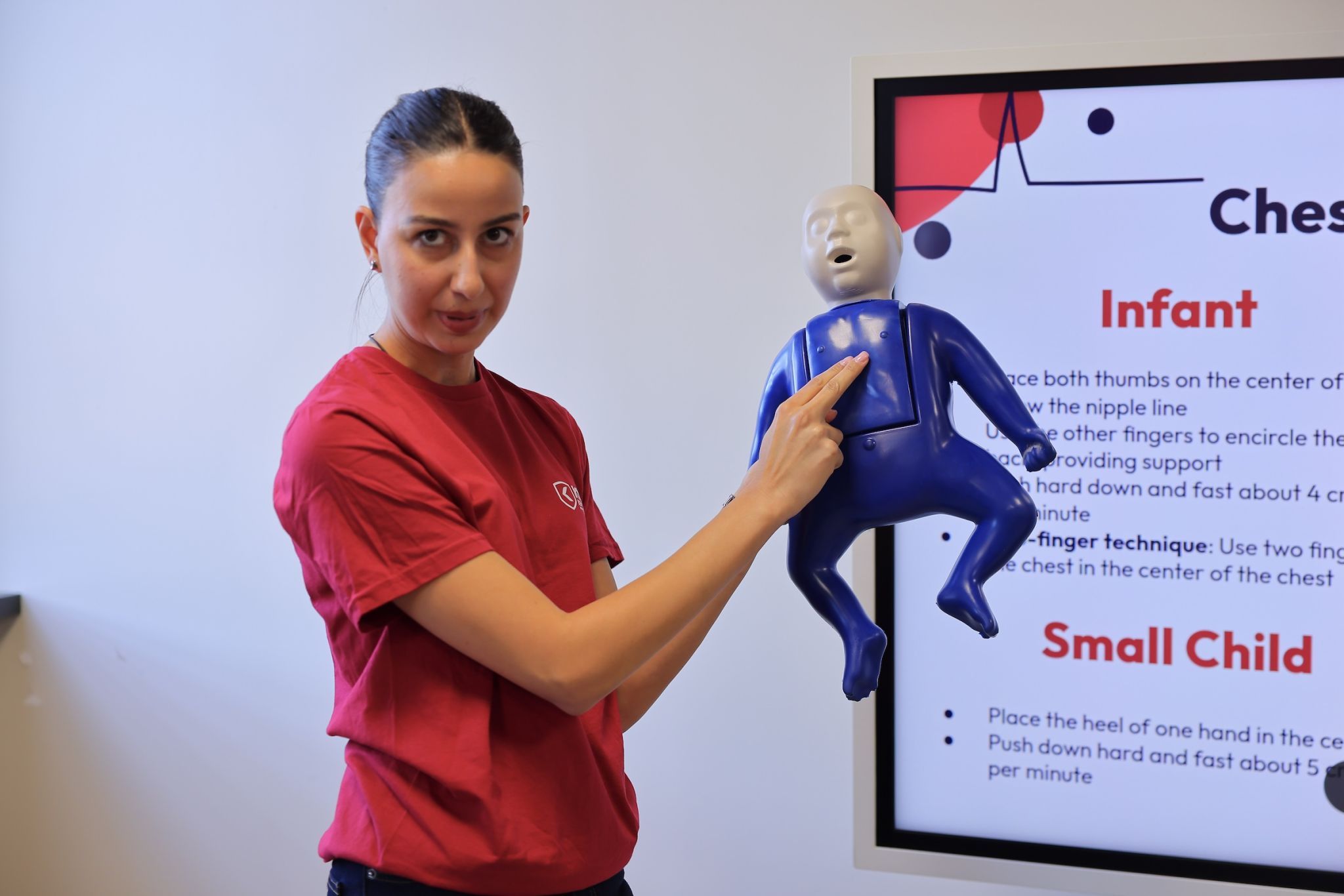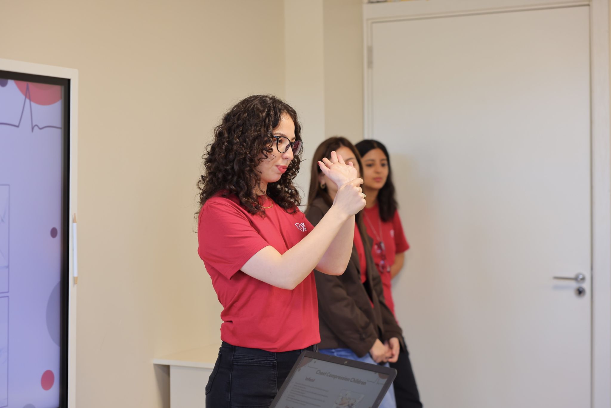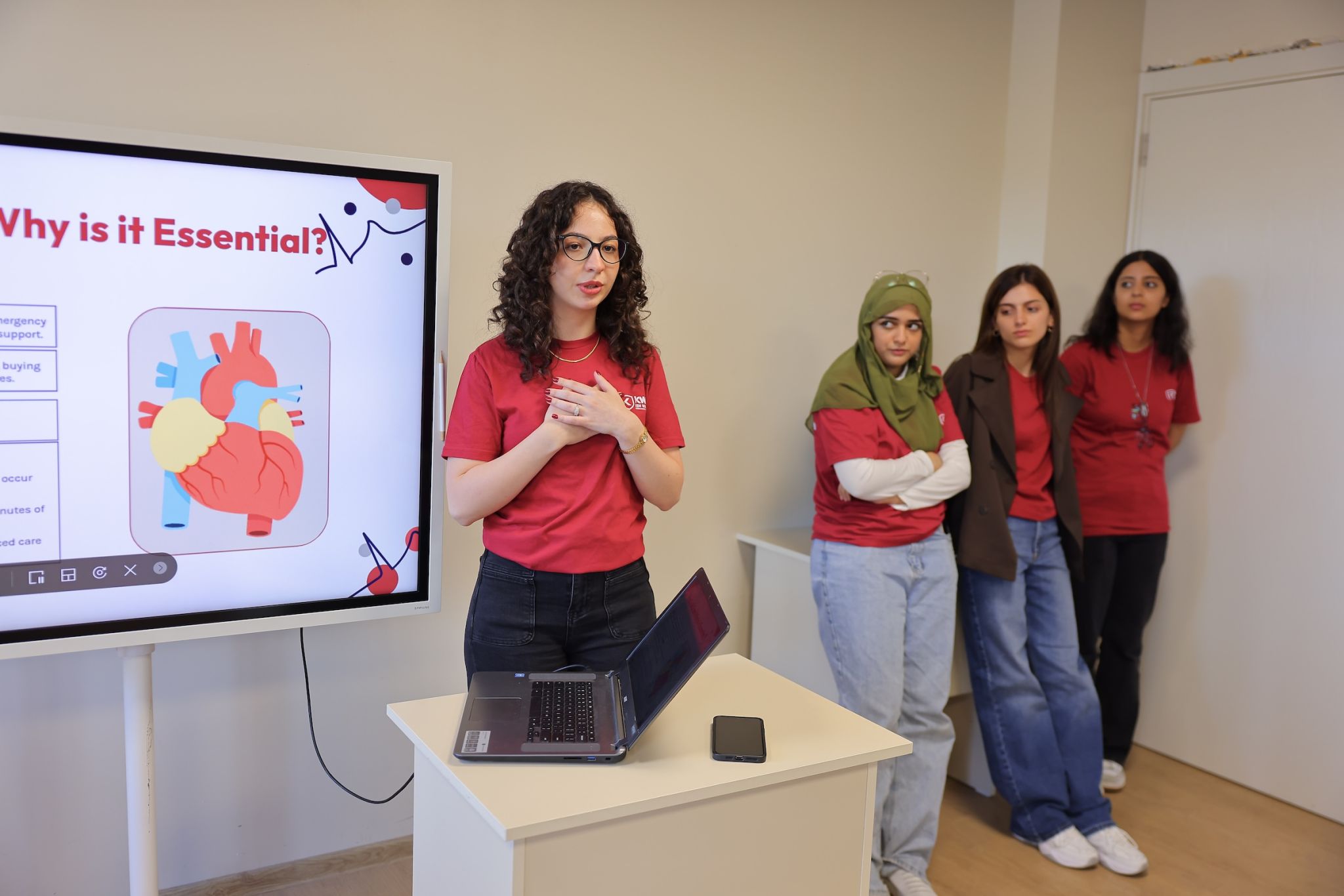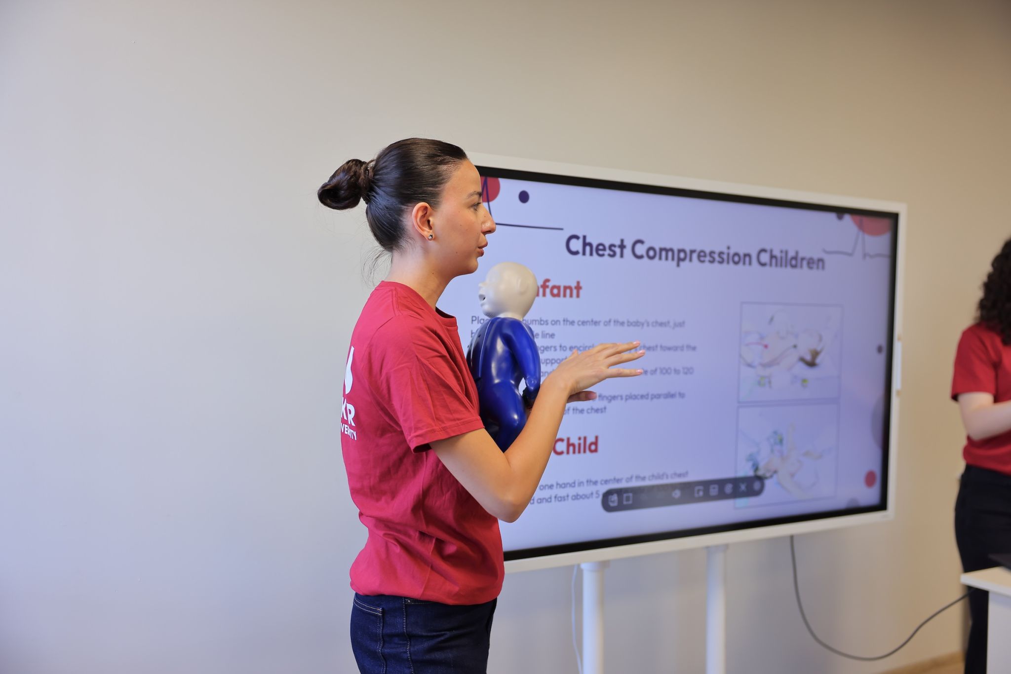 Following this introductory meeting, a hands-on simulation training was conducted. Ken Walker International University instructors guided students through essential steps for responding to an accident and stabilizing a victim until emergency services arrive. During the session, students practiced CPR (cardiopulmonary resuscitation - a lifesaving procedure performed when the heart stops) using medical simulation manikins.