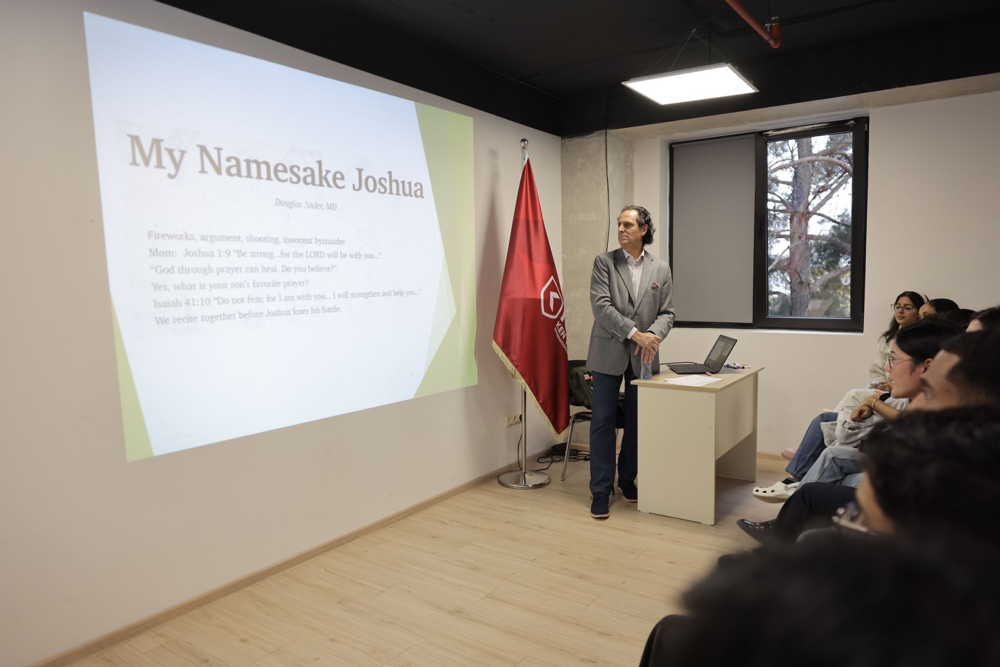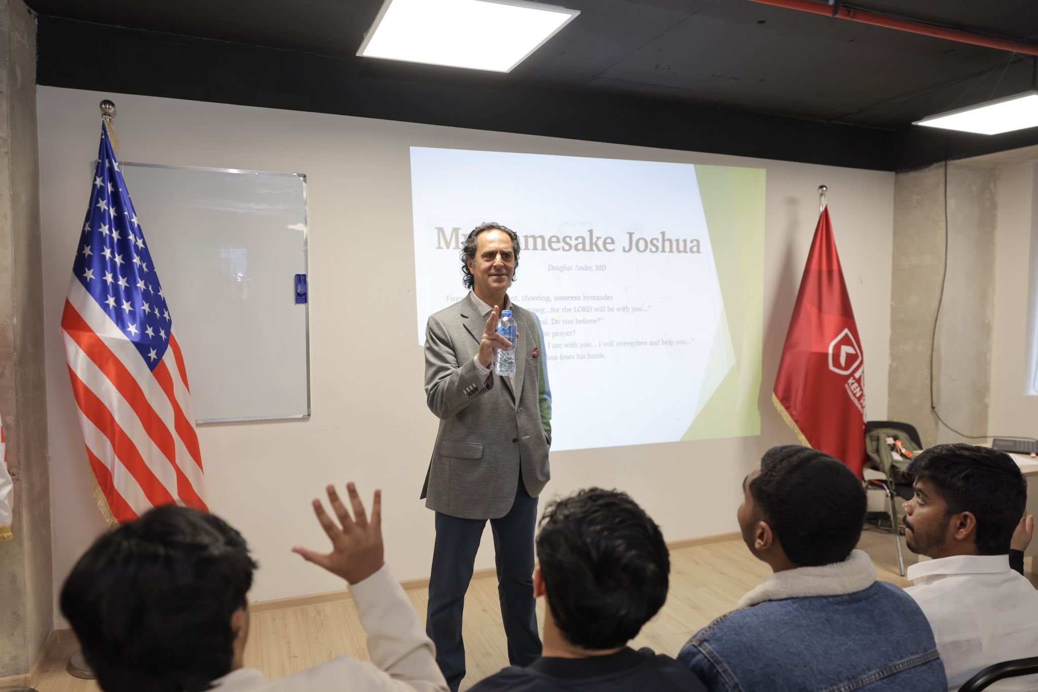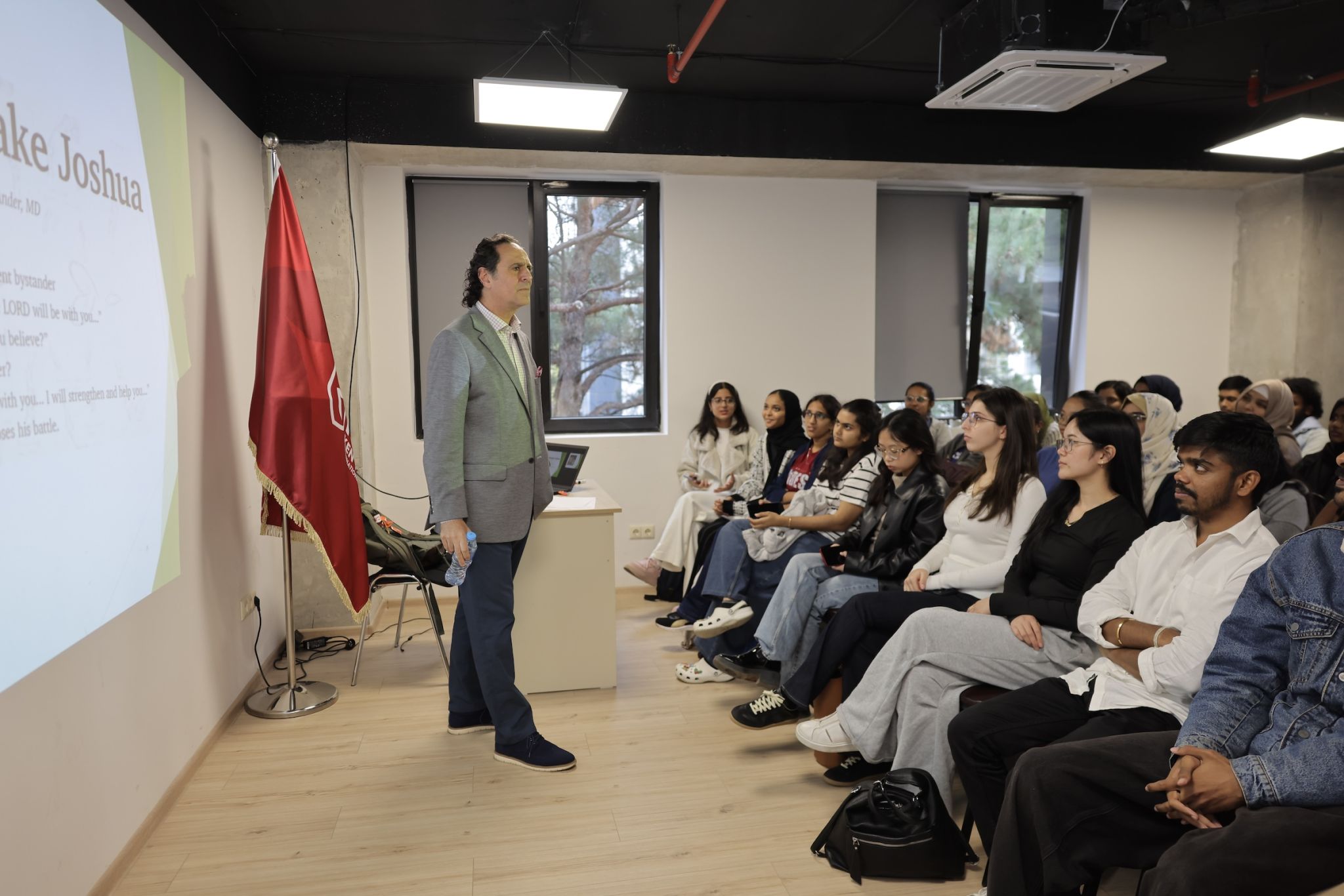 Professor Ander delivered a lecture titled “One Typical Day in an Emergency Medicine Doctor’s Life,” providing students with an authentic glimpse into the fast-paced and high-stakes world of emergency medical care. Using real-life examples and personal experiences, he highlighted the importance of teamwork, quick decision-making, and compassion in managing critical situations.