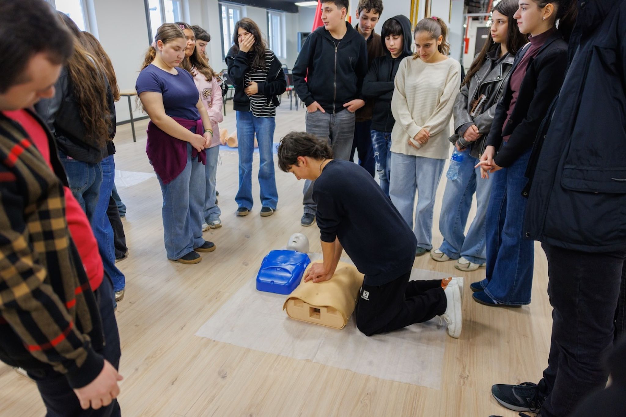 Particular emphasis was placed on CPR as a vital life-saving technique. Hands-on sessions were conducted in an interactive format using professional training mannequins, allowing students to build confidence through practice.