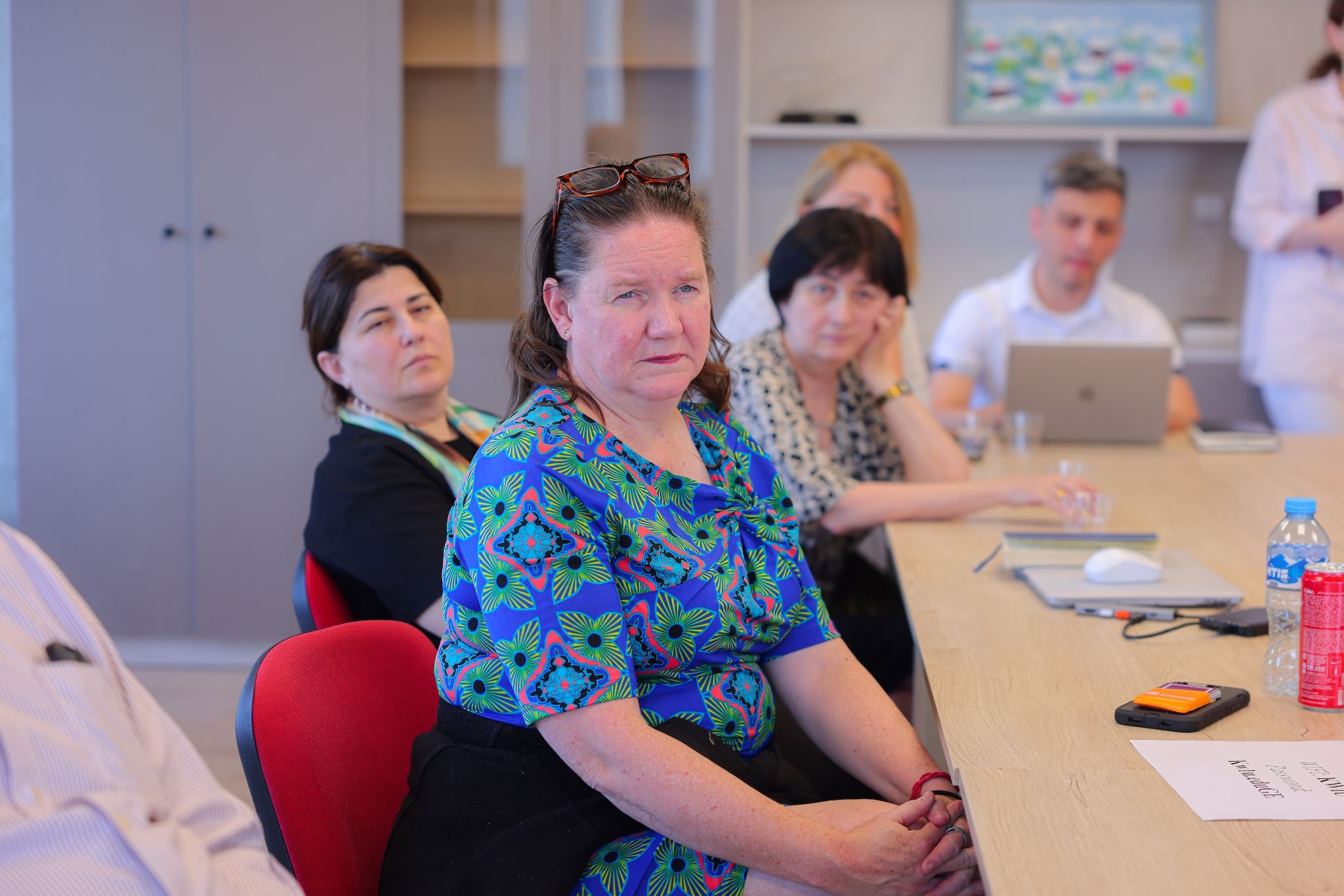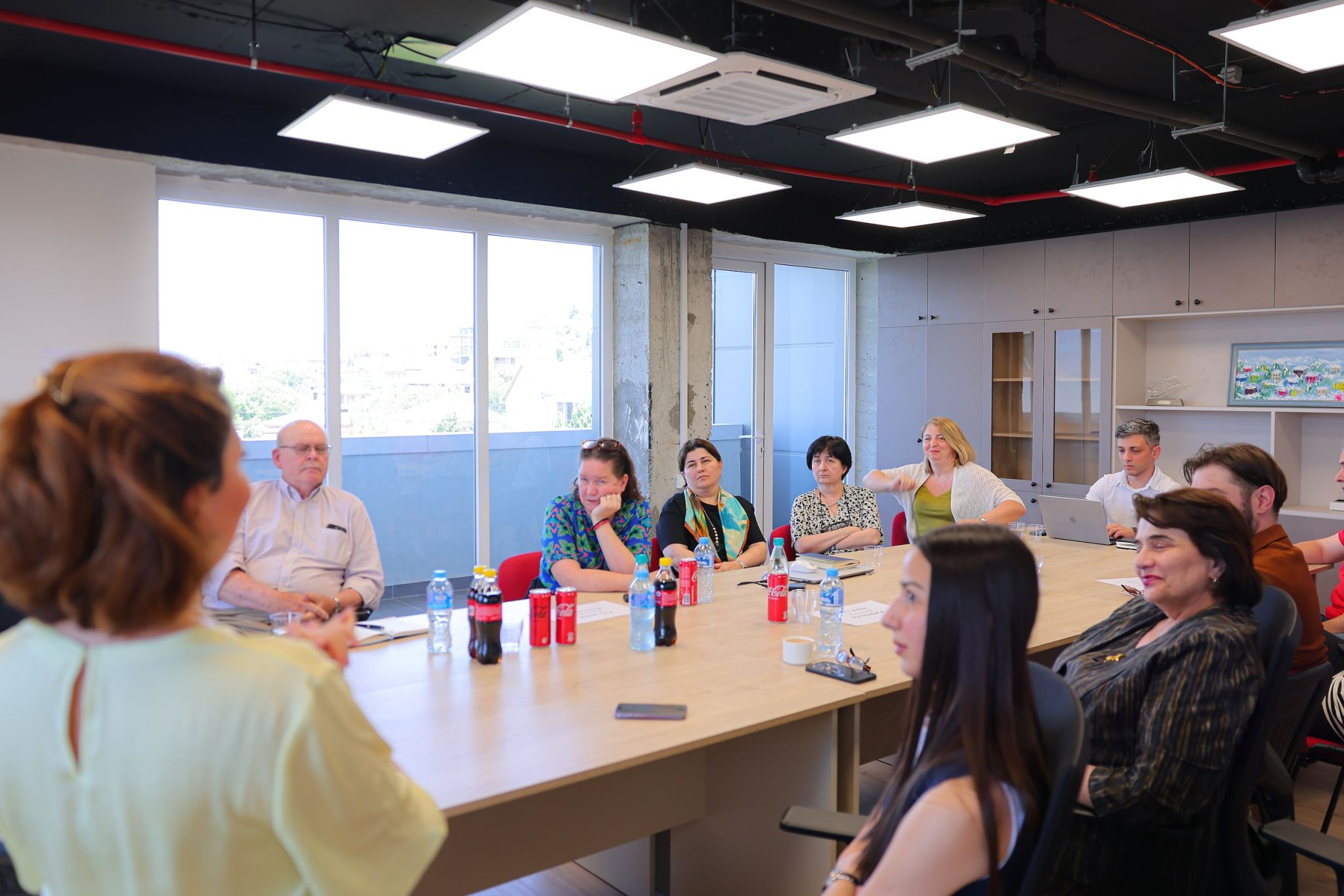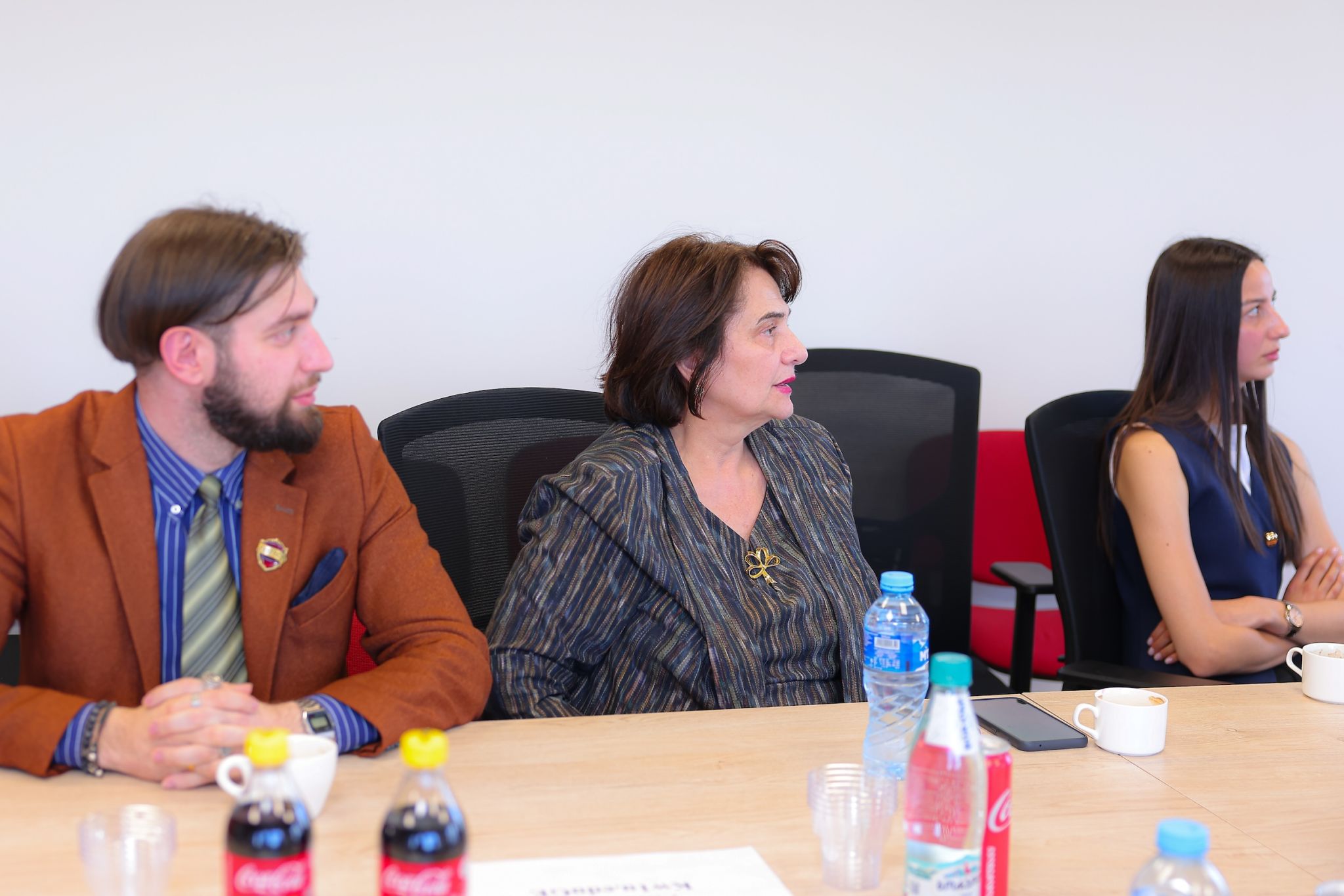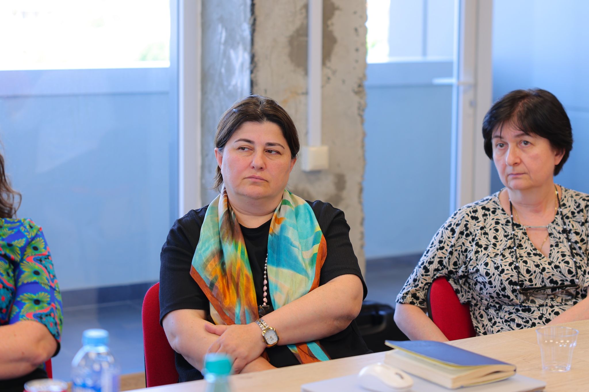 During the meeting, the university’s academic team presented the summary report for the 2024- 2025 academic year. Associate Professor Nino Shiukashvili, Head of the Quality Assurance Services, Specialist Mariam Rochikashvili, and Dean of the Faculty of Medicine and Stomatology, Professor Nino Tevzadze, reviewed the university’s progress based on indicators developed by the Department of Quality Assurance Services.