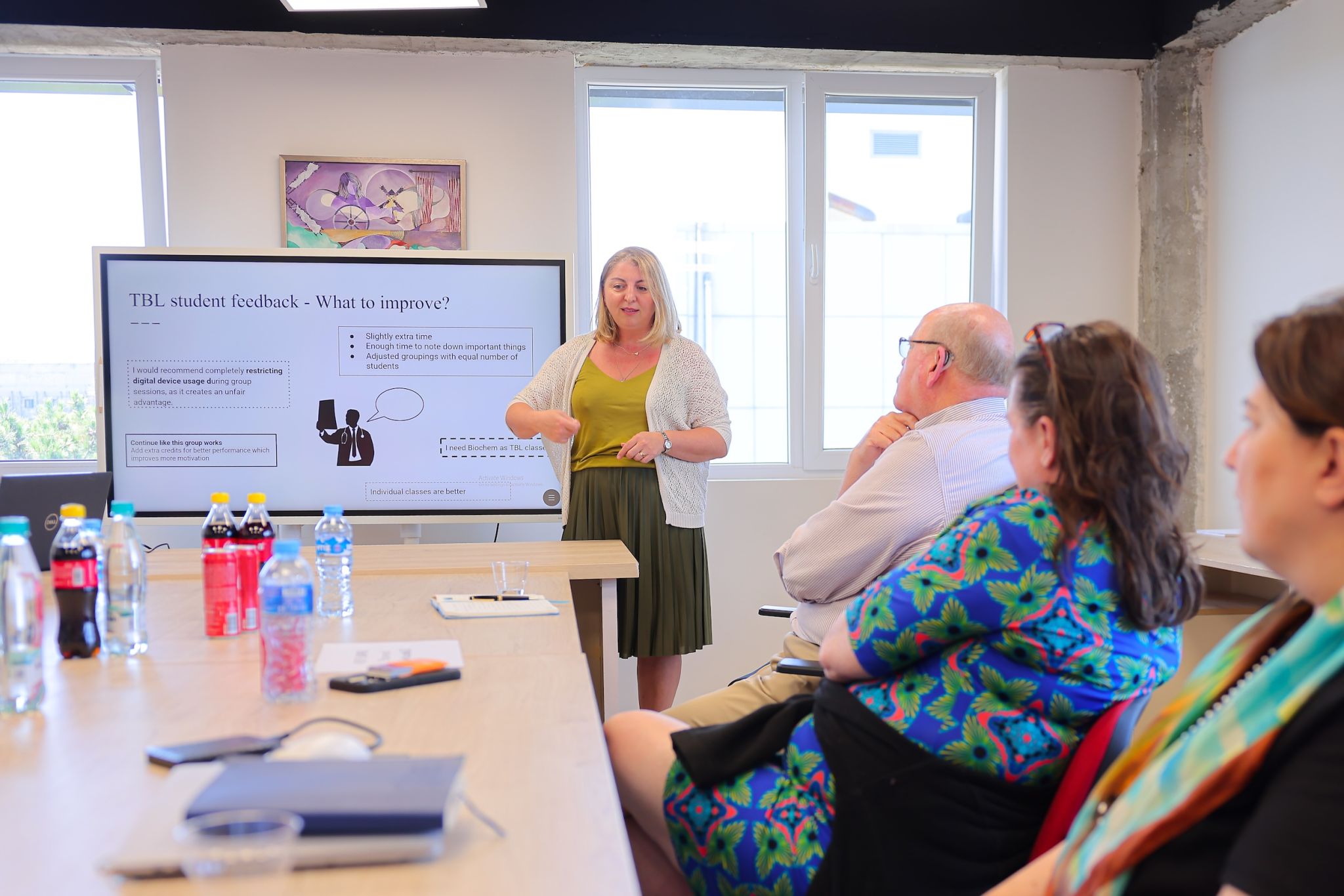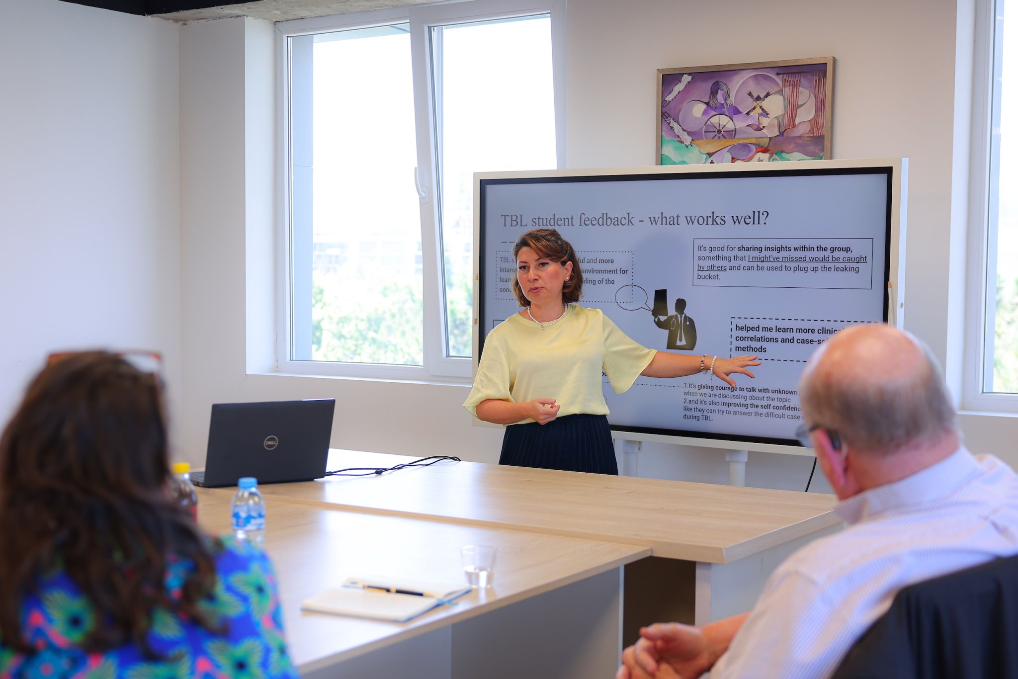 In addition, the speakers presented the innovative teaching methods introduced into the educational program during the current academic year and discussed upcoming projects aimed at further enhancing the learning process and aligning it more closely with international standards.