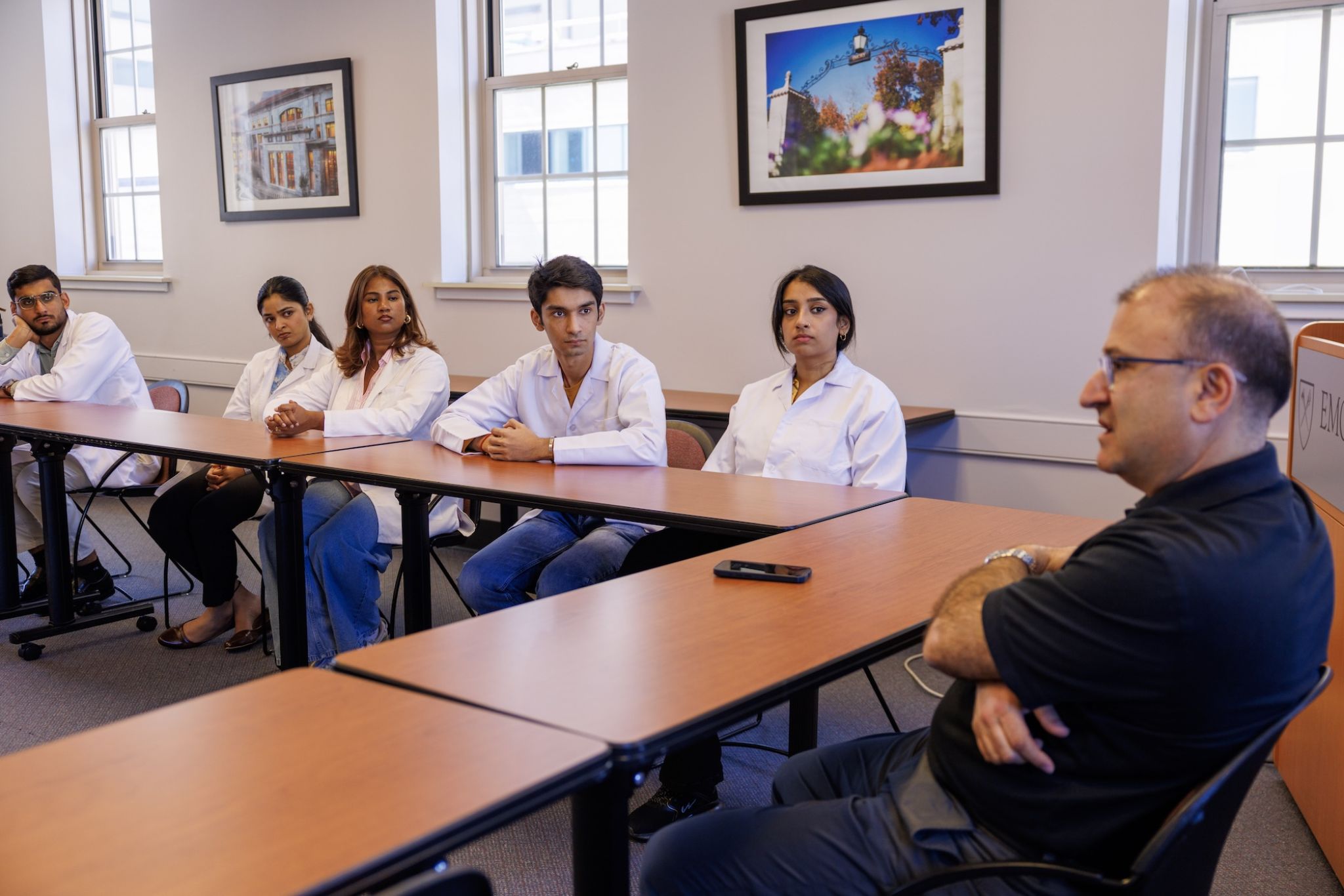 Beyond the tour, students participated in an engaging discussion with Dr. Kazzi, who shared his professional journey, perspectives on the U.S. healthcare system, and valuable advice on preparing for the USMLE exams and pursuing residency training. A special focus of the session was on research opportunities, with Dr. Kazzi encouraging students to take part in projects that could strengthen both their academic and professional growth.