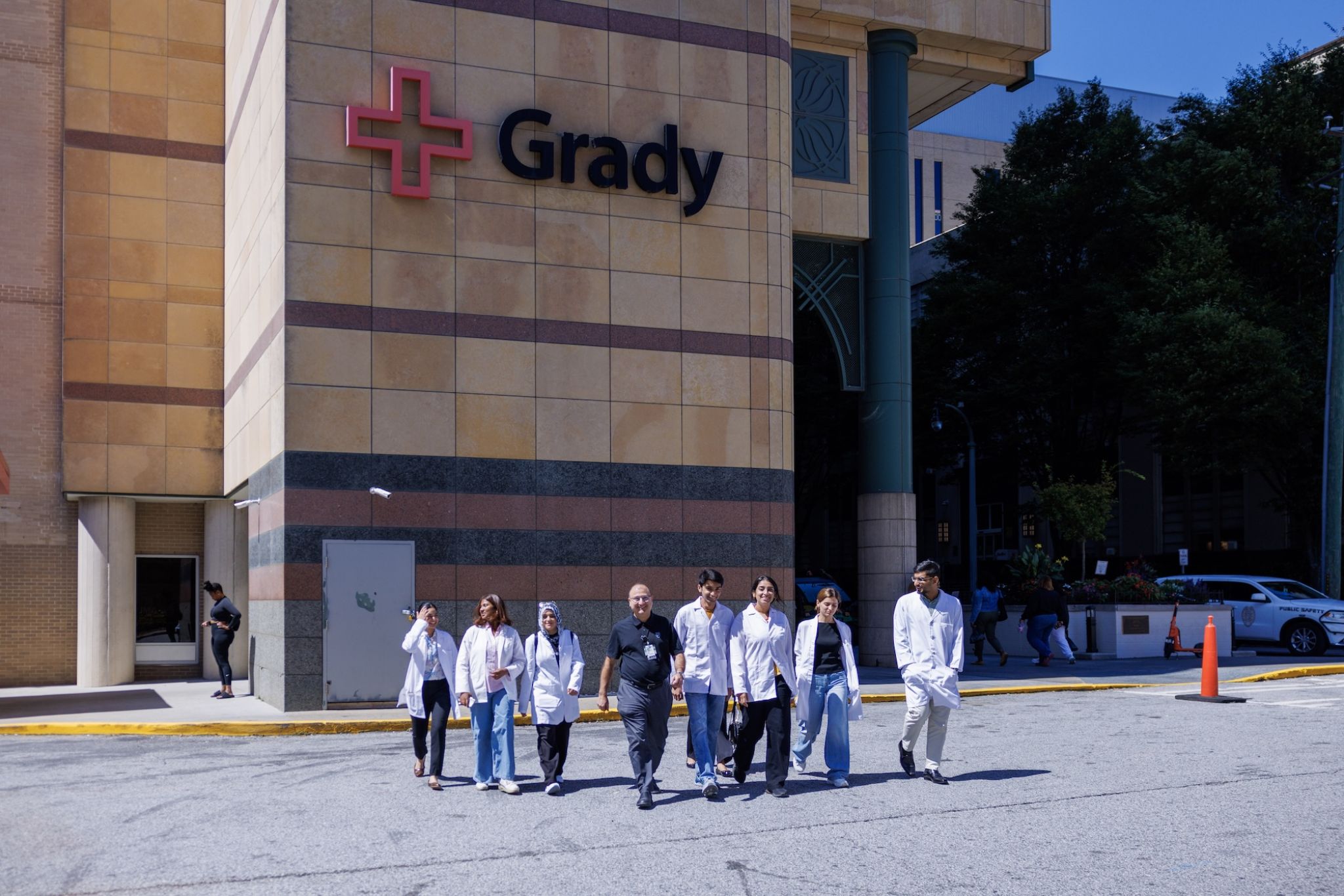 Guided by Dr. Ziad Kazzi, a renowned emergency physician and medical toxicologist at Emory University, students gained first-hand exposure to the realities of emergency and trauma care in a high-intensity clinical environment. Dr. Kazzi walked them through the hospital’s Emergency Department, trauma units, critical care facilities, and toxicology services, explaining how Grady served as a Level I Trauma Center and plays a vital role in Atlanta’s healthcare system.