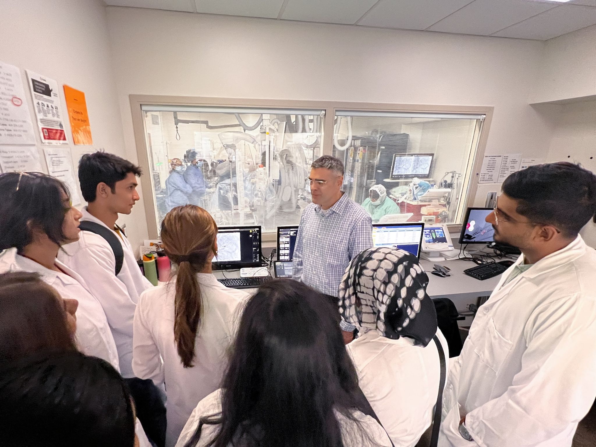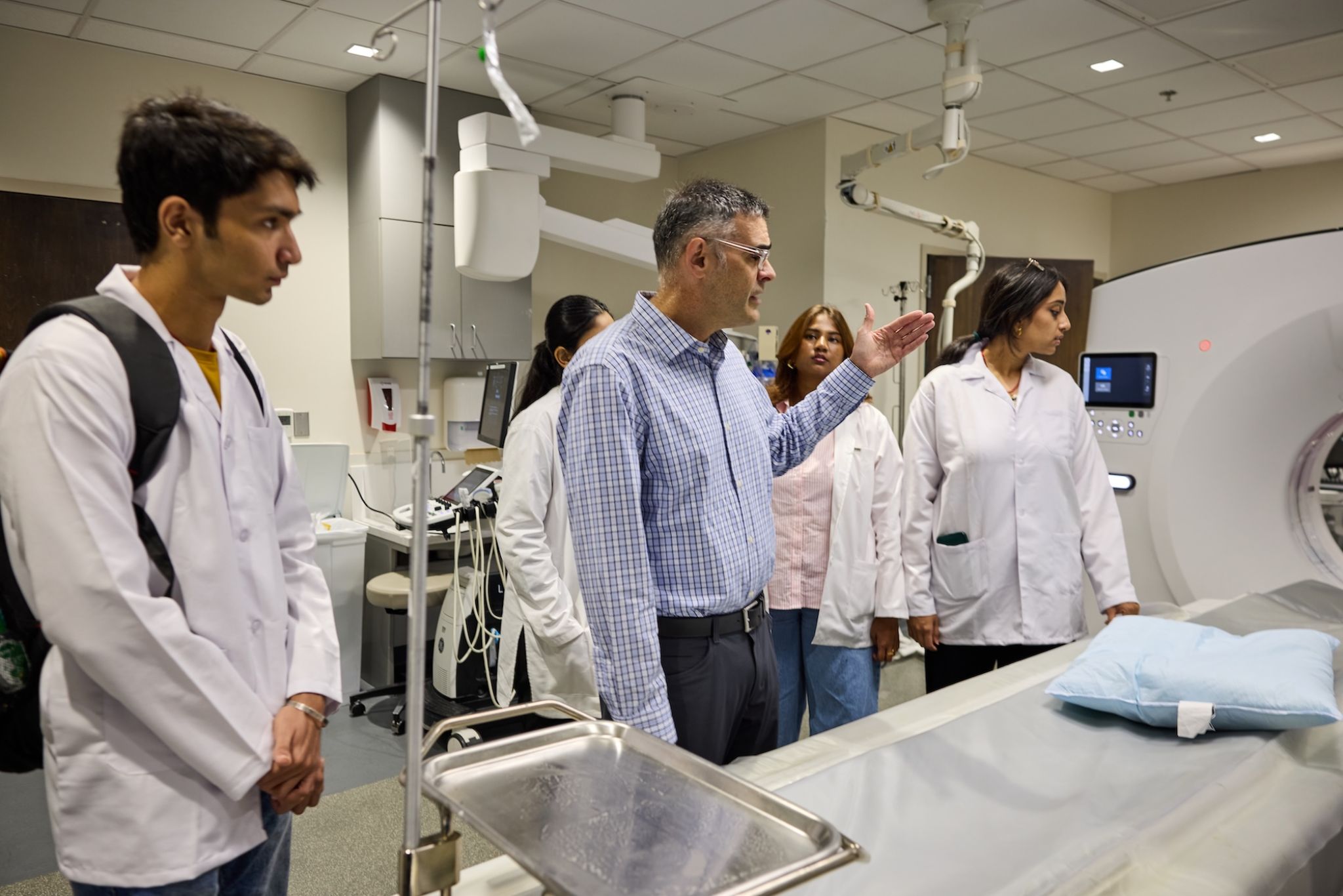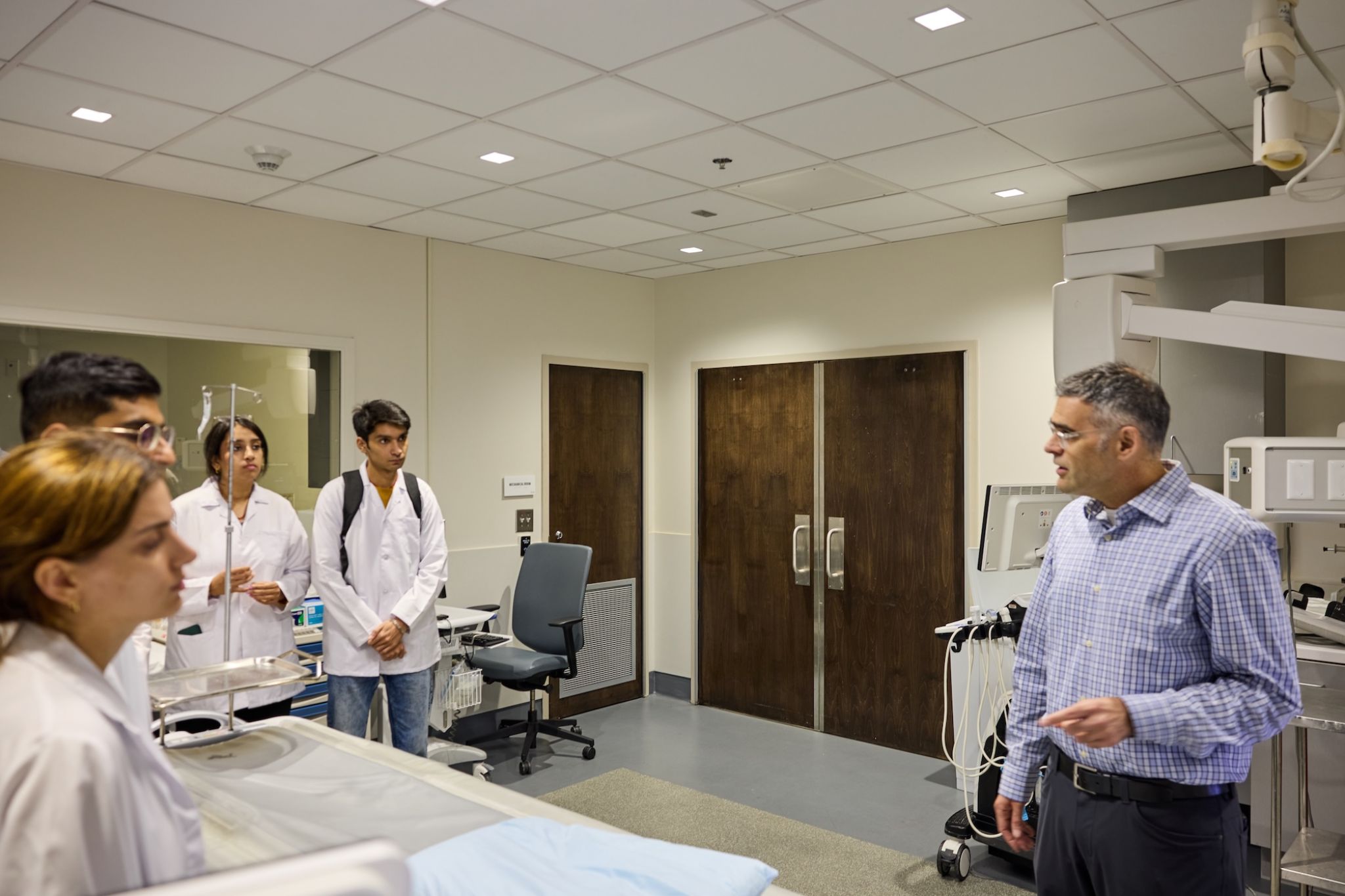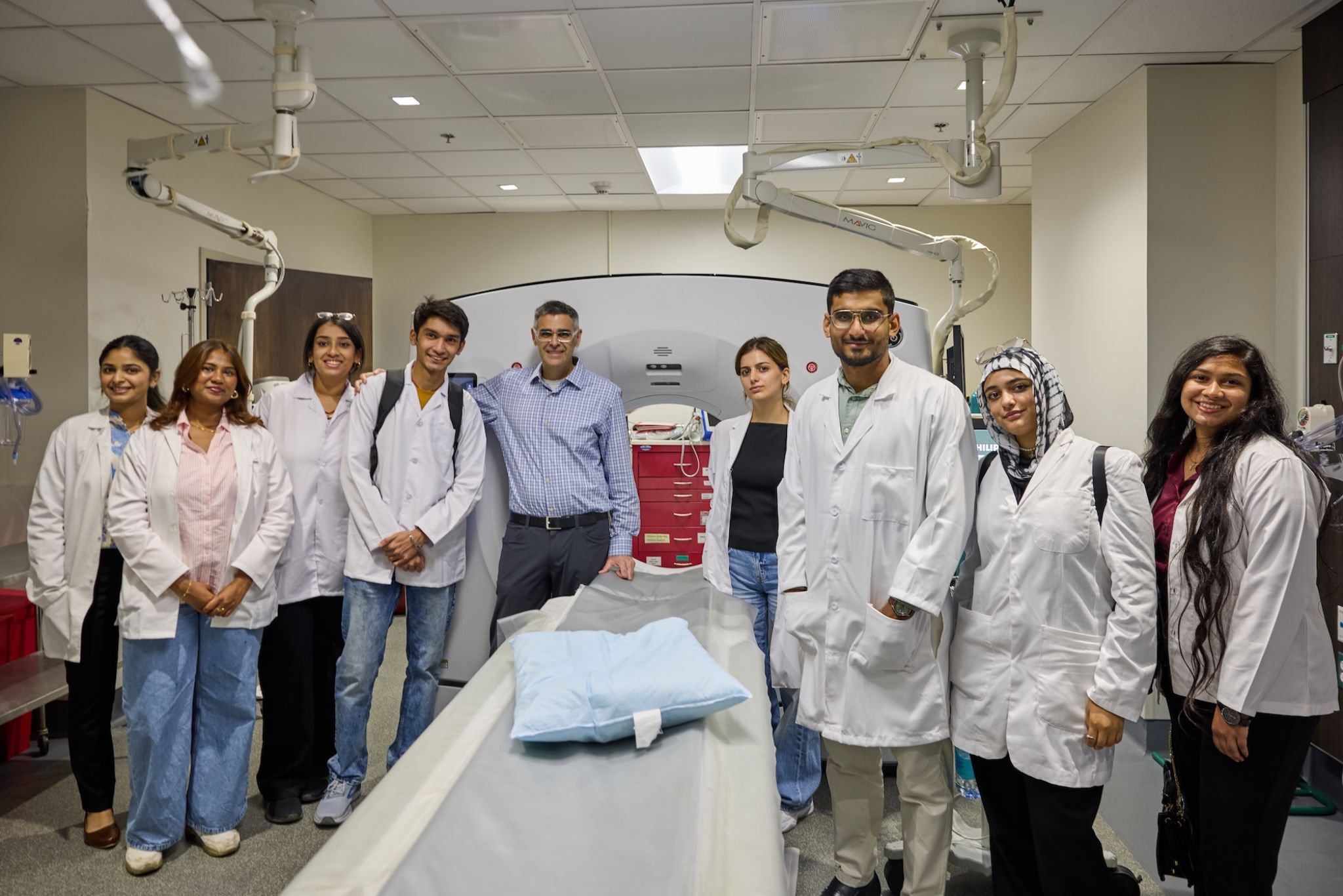 Dr. Dariushnia introduced them to the interventional radiology department and team, and offered a behind-the-scenes look at the daily workflow. Students were able to observe clinical practice firsthand, gaining valuable insight into the vital role interventional radiology plays in patient care. With clinical expertise in venous disease, portal hypertension, and pelvic disorders, Dr. Dariushnia also shared his experience as Chair of the Society of Interventional Radiology Standards Revision Subcommittee, where he leads the development of national quality improvement guidelines.
