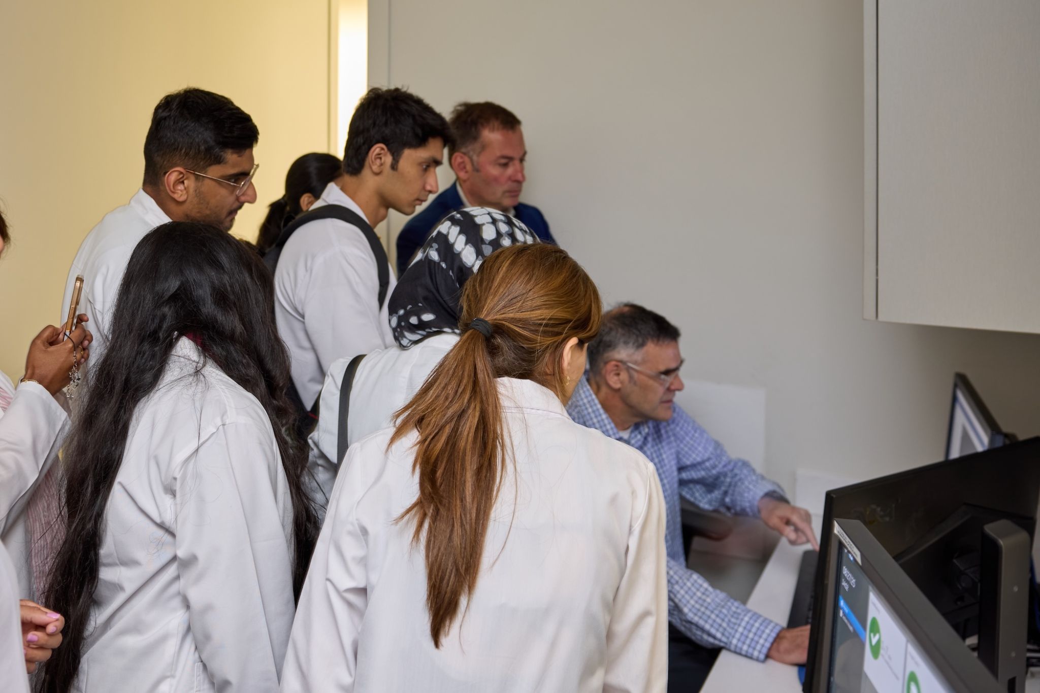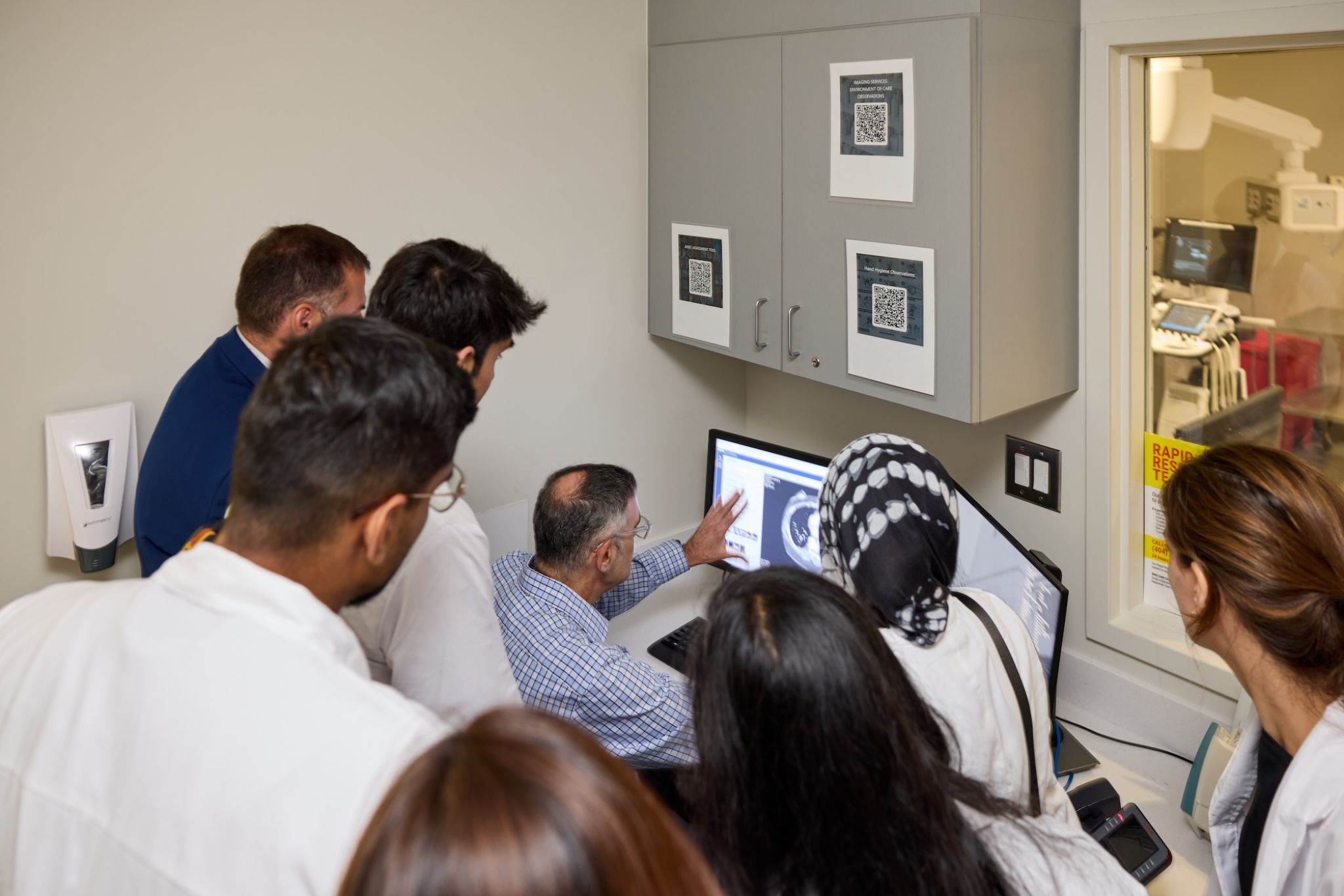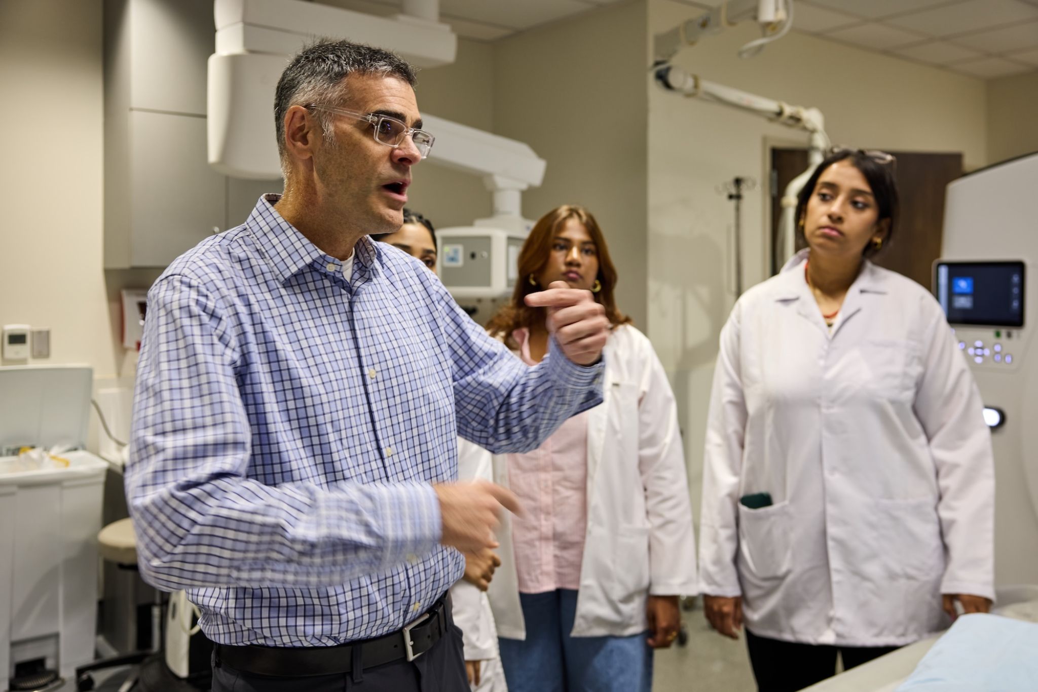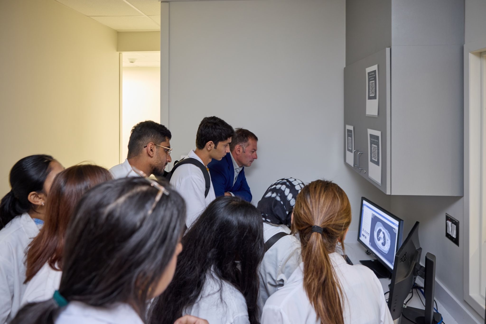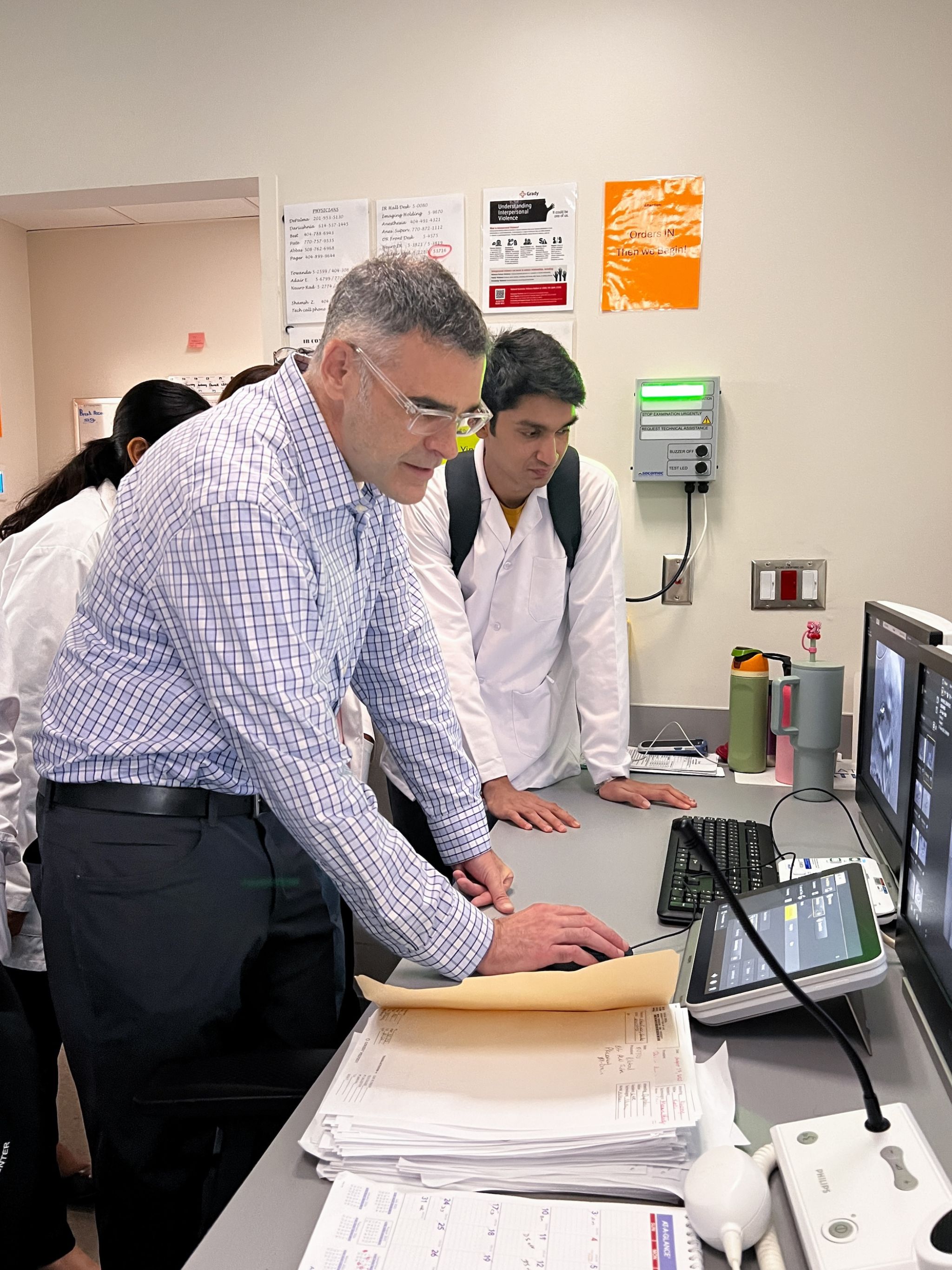 Dr. Dariushnia introduced them to the interventional radiology department and team, and offered a behind-the-scenes look at the daily workflow. Students were able to observe clinical practice firsthand, gaining valuable insight into the vital role interventional radiology plays in patient care. With clinical expertise in venous disease, portal hypertension, and pelvic disorders, Dr. Dariushnia also shared his experience as Chair of the Society of Interventional Radiology Standards Revision Subcommittee, where he leads the development of national quality improvement guidelines.
